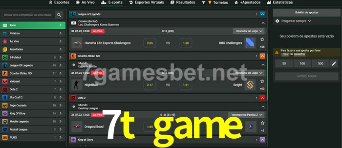 O 7t game oferece uma grande seleção de opções de apostas em e-sports com probabilidades competitivas
